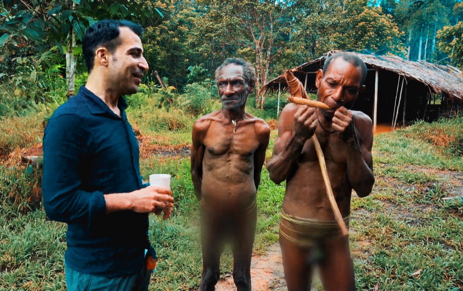 ويضيف: "نحن في منطقة إندونيسية، إقليم بابوا. واحدة من المناطق التي لا تزال فيها غابات كثيفة وهي موطن لنحو 312 قبيلة. جئنا لزيارة واحدة من هذه القبائل هي الأخيرة في العالم التي تمارس أكل لحم البشر. بالطبع، هناك إجراءات أمنية صارمة تسبق الدخول إلى هنا لأن هذه منطقة تسعى للاستقلال. وفيها مجموعة مسلحة. أكملنا هذه الإجراءات. حصلنا على رخصة لدخول الغابة، ثم علينا أن نذهب إلى الغابة للقاء أفراد القبيلة الذين كانوا آخر من أكل لحم الإنسان، وحتى الآن فإنهم إذا اشتبهوا في كون شخص ما ساحراً أو مسحوراً فإن احتمال قتله ثم أكل لحمه وارد، ولأنه يتعين علينا المشي لعدة أيام والمبيت لعدد من الليالي في الغابة، علينا أن نبتاع الطعام والضروريات من آخر مدينة قريبة من الغابة وحملها معنا".