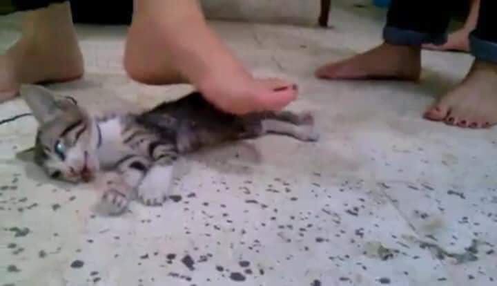 وتظهر فتاتان في الفيديو تقومان بتعذيب قطة صغيرة بعد ربطها بخيط والوقوف عليها ودهسها بالأقدام، بينما ظلت القطة تستنجد دون جدوى الأمر الذي أدى إلى نفوقها، لكن الفتاتين لم تكتفيا بذلك بل نشرت إحداهما الفيديو الذي يتجاوز الدقيقتين على حسابها في مواقع التواصل، فيما تتحفظ رووداو على نشر المقطع لوحشيته.