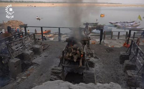 ينبعث من هذه المحارق التي تلقي رماد الجثث في نهر الغانج دخان أسود ورائحة يعبق بها المكان.